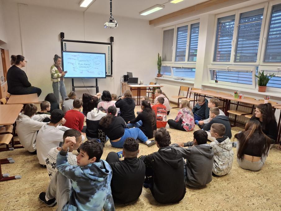 V úterý se žáci druhého stupně sešli v učebně přírodopisu na přednášce naší školní metodičky prevence Mgr. Barbory Mrázové na téma "Sexuální rizikové chování". Dozvěděli se mnoho zajímavých věcí z oblasti intimity, učili se různé dovednostní techniky a seznámili se s obranou proti nechtěným situacím.