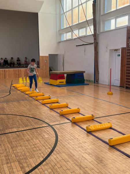 Po atletické rozcvičce a seznámení s organizací a disciplínami, měli žáci za úkol zdolat jak překážkovou dráhu, tak hodit míčkem do dálky, skočit co nejdál a uběhnout jak nejrychleji dovedou 20 metrů.