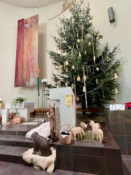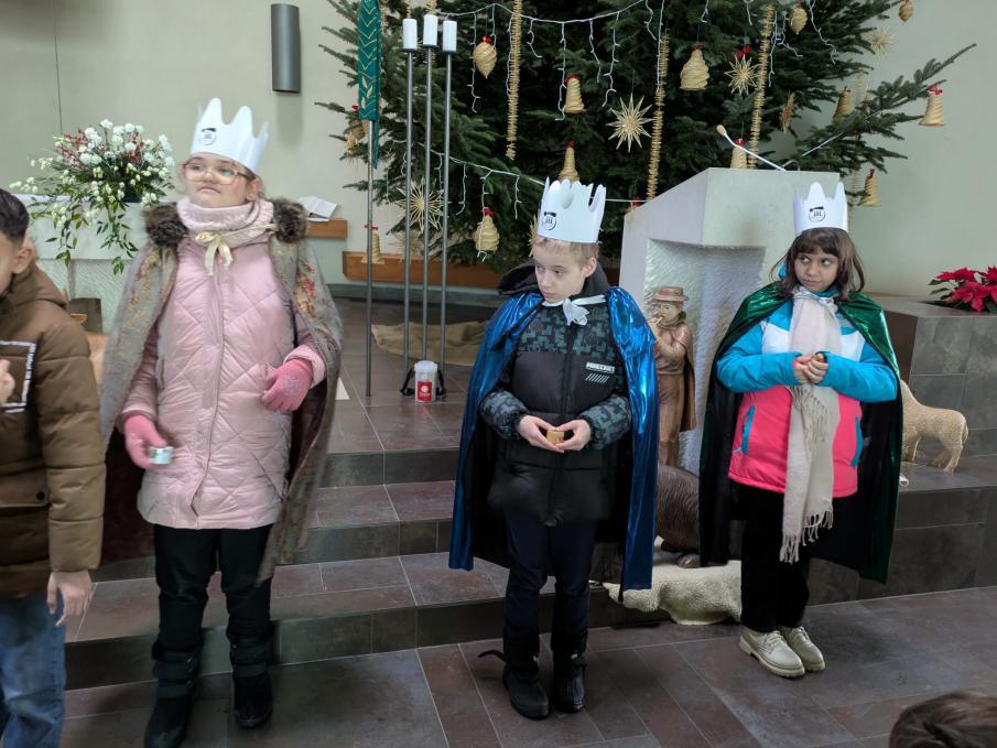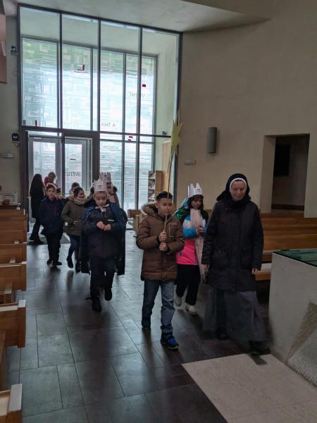 Prohlídli si nádherný dřevěný betlém, který vyřezal známy řezbář Josef Staňěk, ale také si zahráli ve vánočním příběhu, který jim vyprávěla řeholní sestra Františka. Mnohé nám také objasnil otec Rylko, farář této farnosti. Atmosféra kostela nás zcela pohltila, bylo to krásně strávené dopoledne.