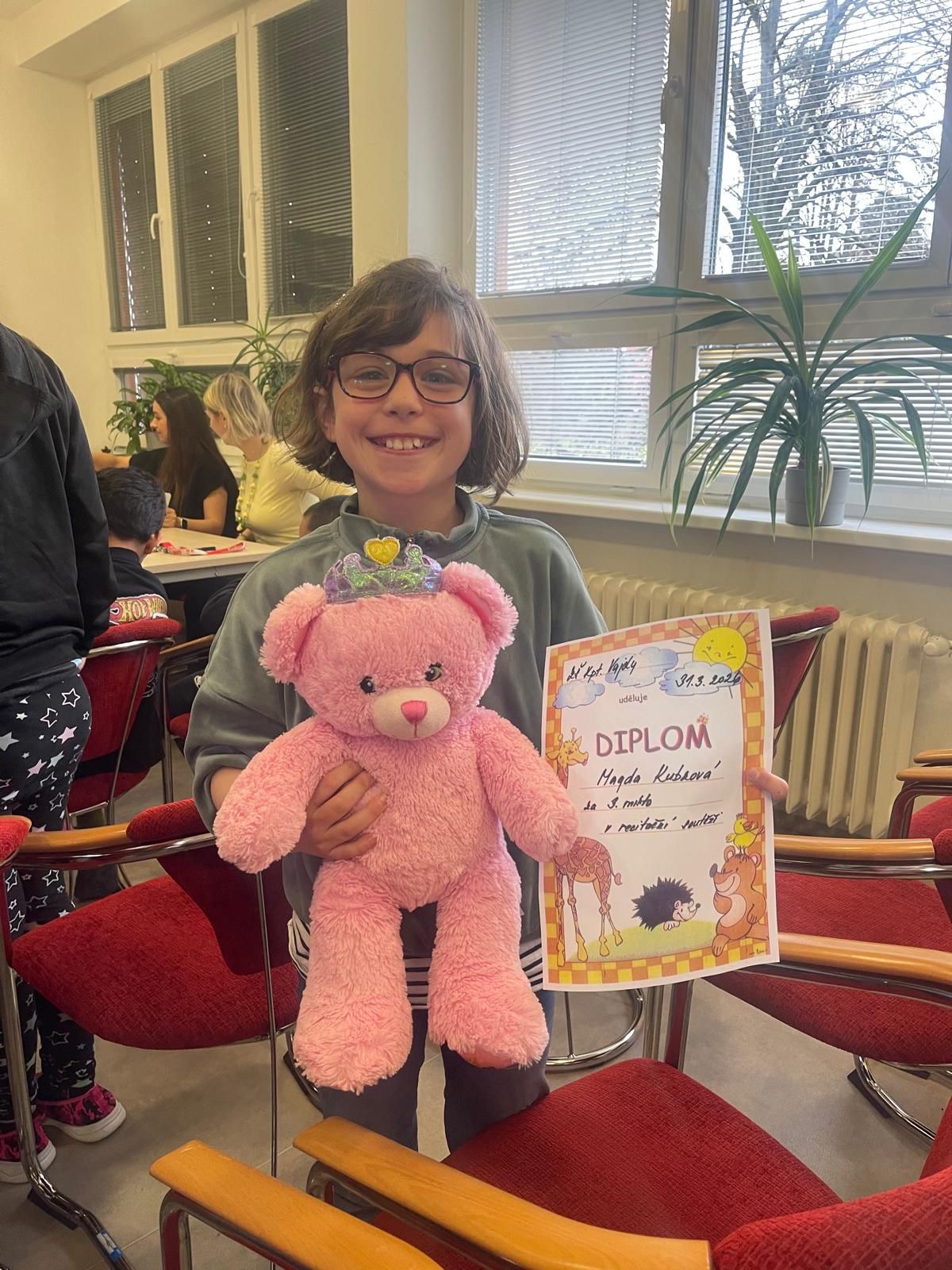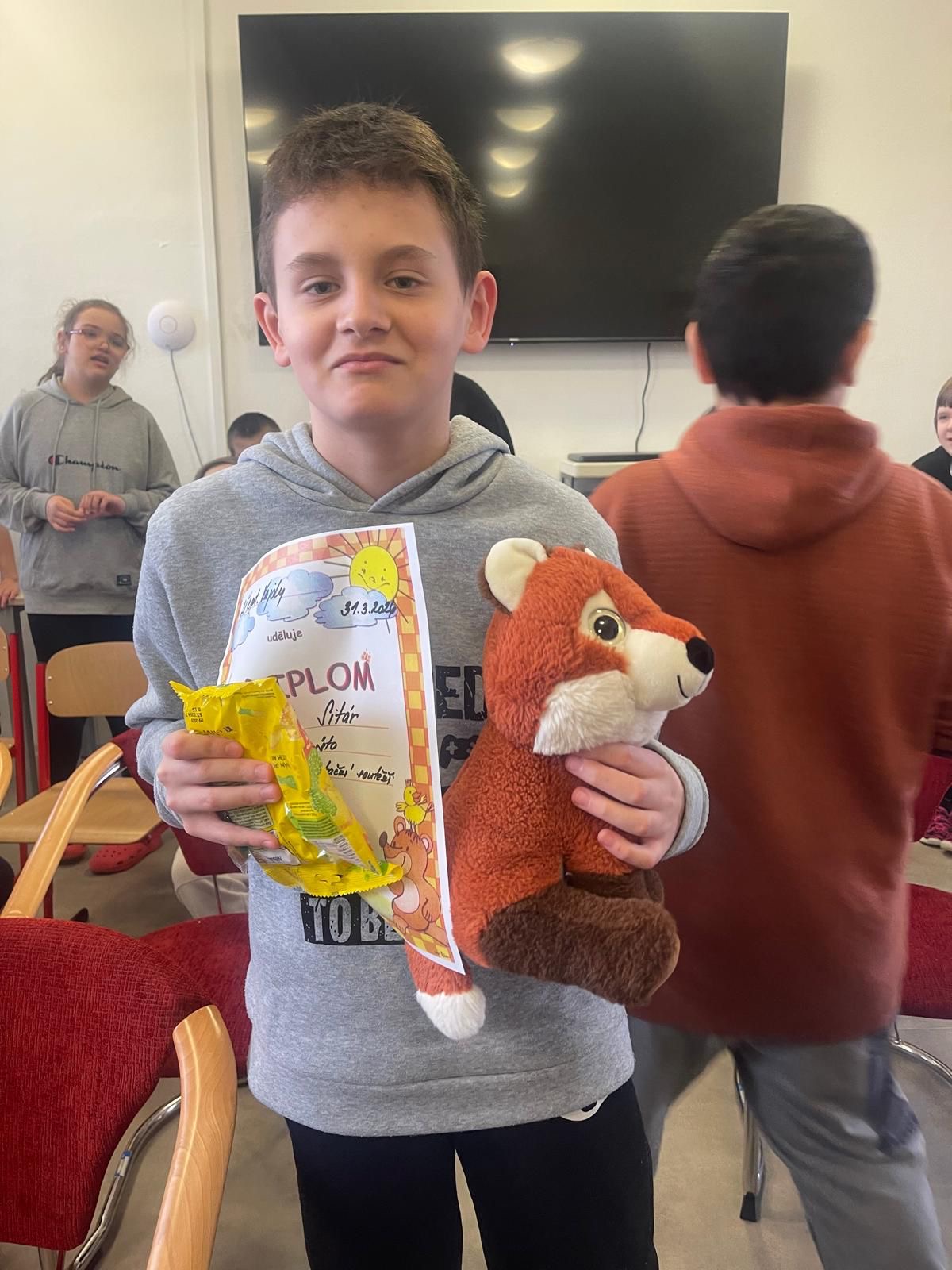 Dne 31. 3. 2026 proběhla na naší škole recitační soutěž žáků prvního stupně, které se zúčastnili zástupci všech tříd. Malí recitátoři si připravili krásné básničky, překonali trému a předvedli obdivuhodné výkony. Porota měla nelehký úkol, protože všichni soutěžící si zaslouží velkou pochvalu za odvahu a snahu. Celá soutěž proběhla v příjemné a přátelské atmosféře a už teď se těšíme na další ročník. Děkujeme všem dětem za krásný kulturní zážitek.